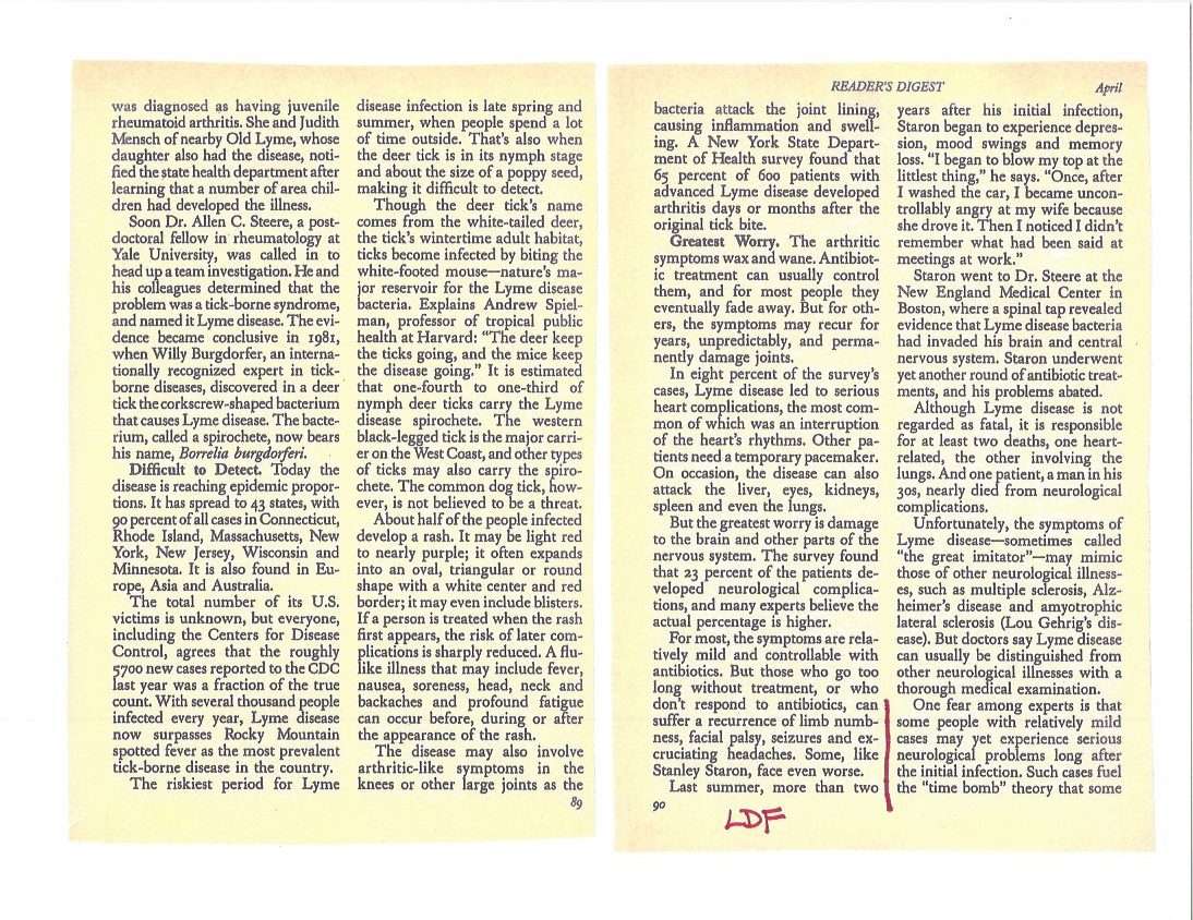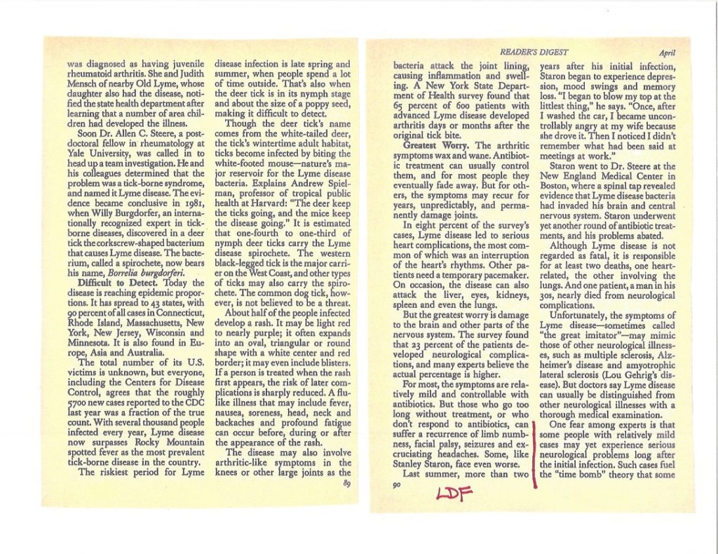 The LDF’s effort resulted in increased research funds for federal, state, and local governments; assisted in the rapid growth in recognition of the disease in new states; and improved widespread understanding of emerging new diseases. Public needs and daily inquiries to the LDF has changed as people learned more about the disease(s). Every day, year after year,  the LDF was interacting with an ever-increasing diverse and well-informed population (e.g. donors, state & federal agencies, members of the U.S. Congress, state legislators, legal counsel, healthcare providers, corporate executives, and media). They kept up with this challenge by always creating new informational products to explain the new scientific findings.