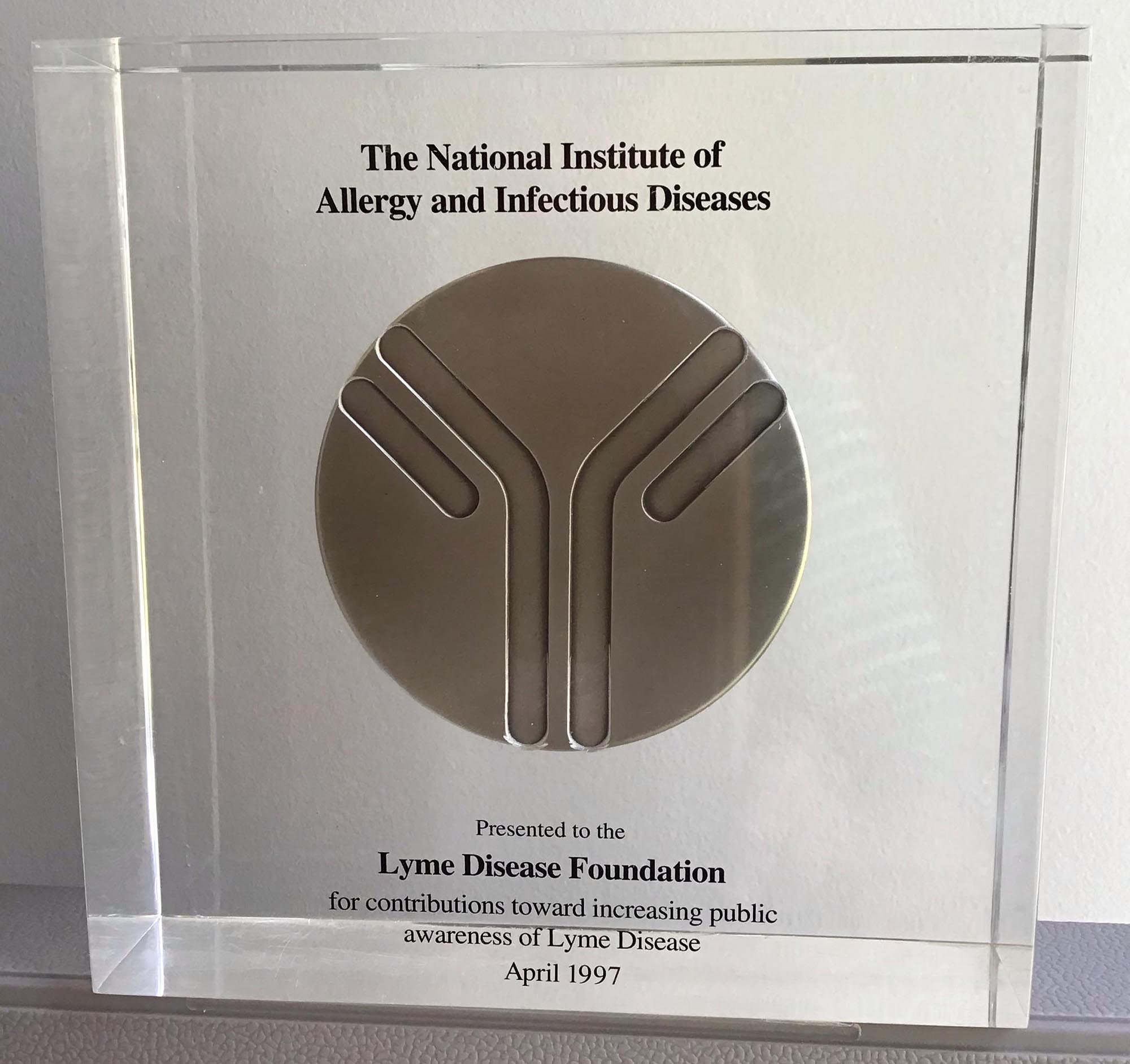 Therefore, it is my great pleasure on behalf of our Institute to present an award to the Lyme Disease Foundation on behalf of the National Institutes of Allergy and Infectious Diseases.”